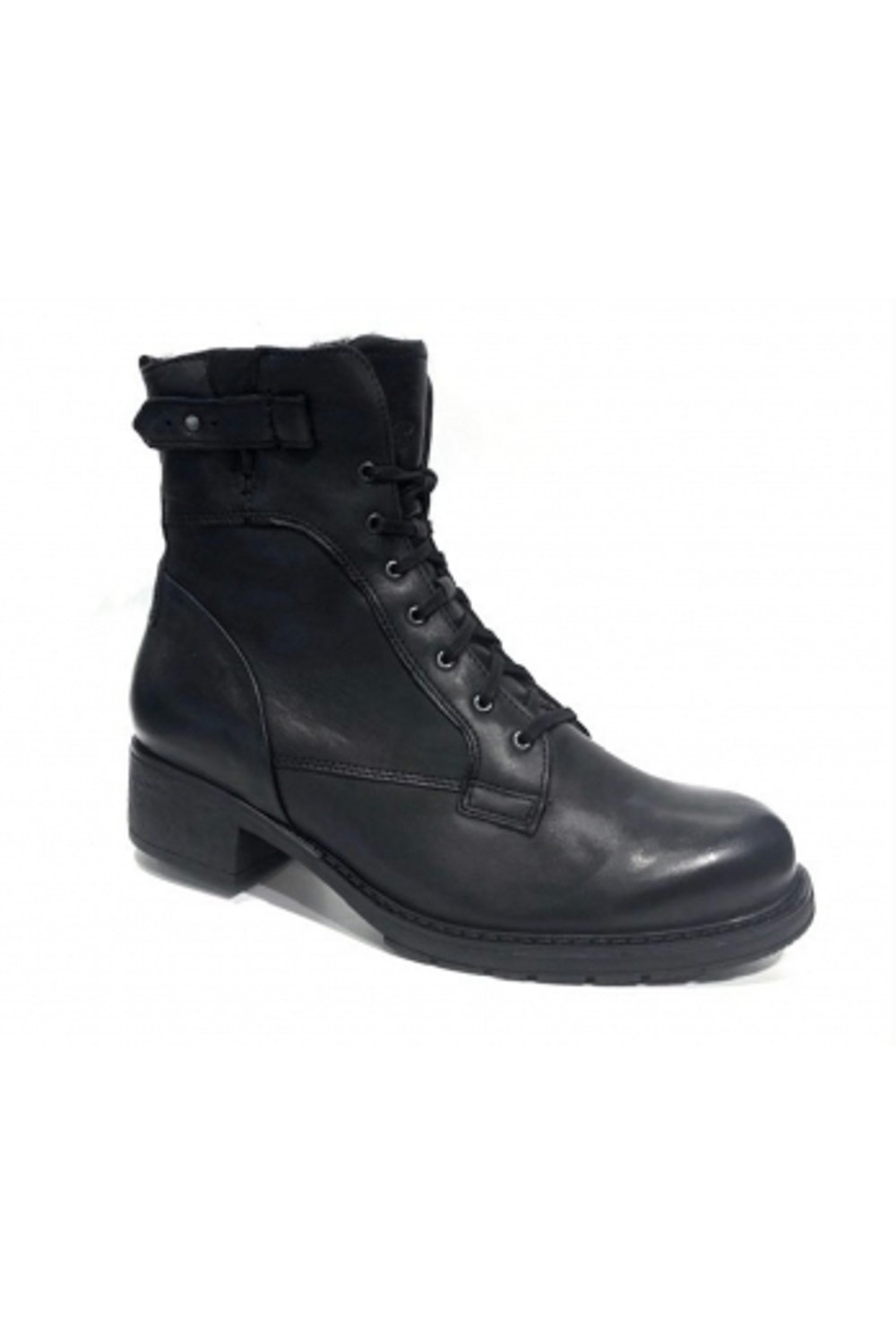 Sportieve boot van Durea op hak met optimaal loopcomfort en met uitneembaar voetbed. Deze uitvoering heeft een bontkraag tot halverwege de schacht