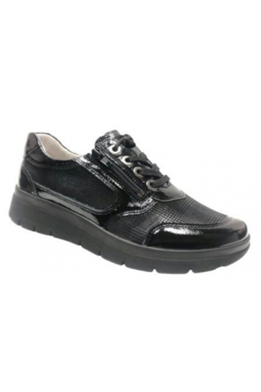 Comfortabele veterschoen met ritssluiting van Stuppy met strech materialen. Zacht soepel en comfortabel. Zeer geschikt voor de gevoelige voet. Met uitneembare inlegzool