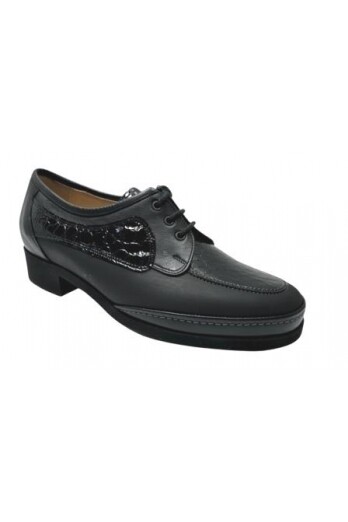 Comfortabele nette veterschoen op lichtgewicht zool. Zachte materialen en stevigheid in de hiel. Voetbed is uitneembaar. Geschikt voor de bredere voet