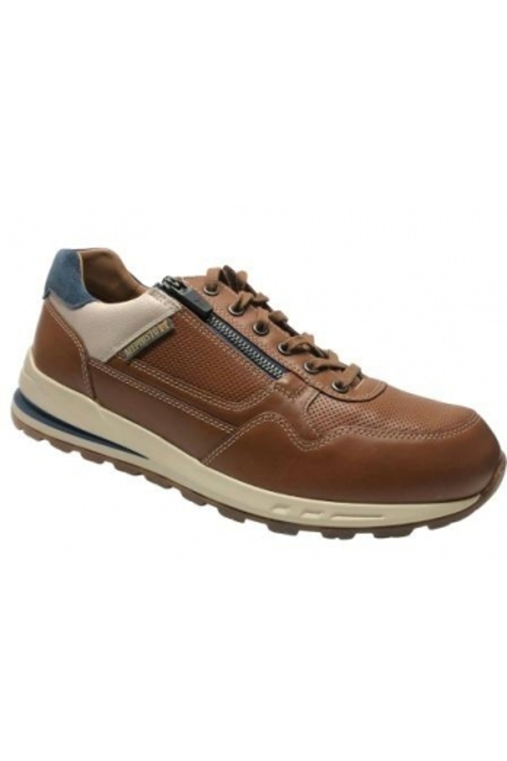 Comfortabele herenssneaker van Mephisto uitgevoerd in zachte leersoorten. Voering is van leer en voetbed is uitneembaar